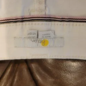 NEVER WORN. 98% cotton 2% elastane. Machine washable, Mid rise, Fitted through waist, hip and thigh with a straight leg. Side pockets, Back patch pockets.