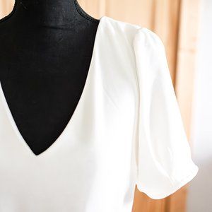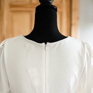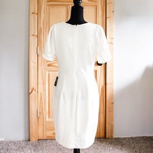 NWT Express Puff Sleeve Sheath Dress with Tie Waist in Winter White Size Medium