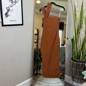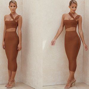 HOUSE OF CB 'Aina' Tan Cut Out Bandage Midi Dress NWOT