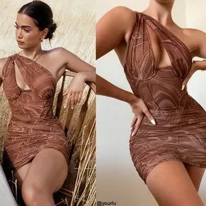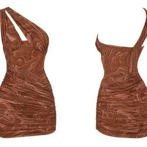 This dress is a beautiful way to tap into style. It's crafted from a soft power mesh in a dreamy cocoa swirl print and backed in a special power mesh to sculpt and shape the figure from within, acting like shapewear that is cleverly built into the dress. The bodice features an amazing corsetry boning for a super cinching effect and the bust has built in underwired cups to escape the need for a bra as it has all the support you need. 'Clementine' is effortlessly chic as it sweeps across one shoulder in an asymmetric silhouette and spliced through the chest to reveal a hint of cleavage.