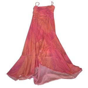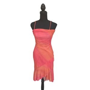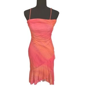 EUC Vintage Taboo women's hot orange pink sparkling fishtail midi dress S