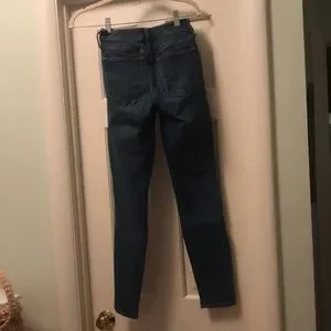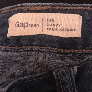 Gap curvy true skinny jeans. Darker denim. Two regular front pockets and one small one. Zipper and button closure on front. Two back pockets. Excellent condition.