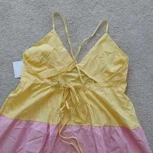 A super summery Just Fab yellow, pink, and blue dress size Large