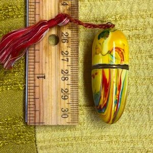 Unique and antique enameled needle holder with tassel. Made in Germany. Photos are part of the description.