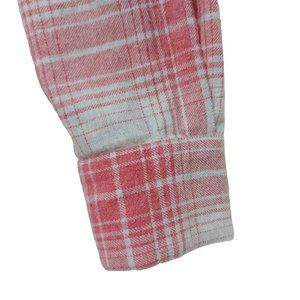 Madewell Flannel Shirt Womens XXS Pink Beige Cozy Plaid Oversized Long Sleeve