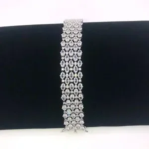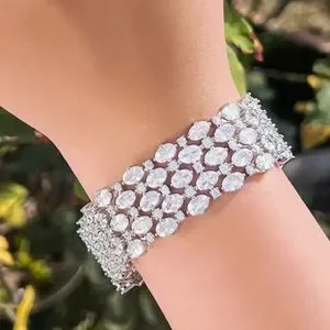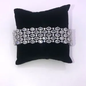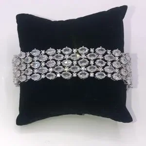 This stunning bracelet is set with 5 rows of lustrous oval cut diamond simulate gems totaling 45 carats!