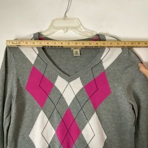 Izod Womens Gray & Pink V-Neck Argyle Golf Sweater SzL (sku153)