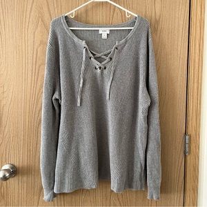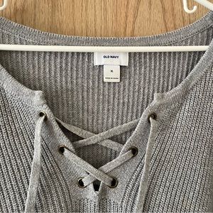Old Navy Lace Up Front Crew Neck Sweater in Grey XL