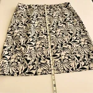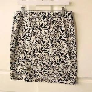 Very good condition Gap pencil skirt in black and tan leaf print. Size 10, 100% cotton. Side zipper. Please see photos for measurements and thanks for stopping by!