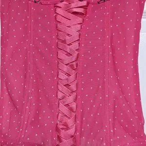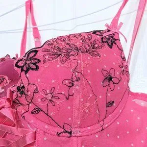 Pink polka dot corset/ bustier with black floral embroidered detail on bust