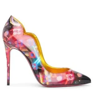 Multicolored patent leather pumps from Christian Louboutin. The Hot Chick pumps sit on a 100 mm slim stiletto heel, featuring a pointed toe along with an arch detail at the side.
