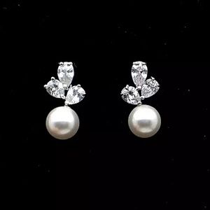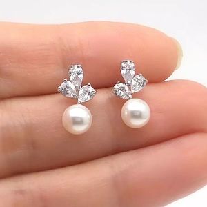 Simulated Diamonds, Imitation Pearl, Sterling Silver Stamped S925 Posts