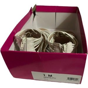 Olive & Edie Remie White Gladiator Strappy Zip Sandals Big Girl Size 1 Youth New. Does not include pink shoe box shown in photos.