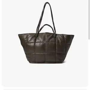 All Saints Nadaline Quilted Leather Tote Bag Olive Green Org. 369.00