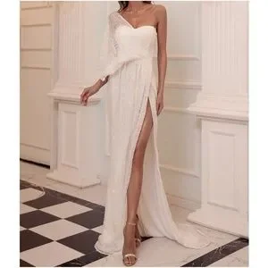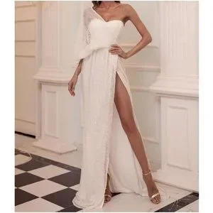 Luxe Sequin One Shoulder Evening Formal Wedding Dress