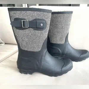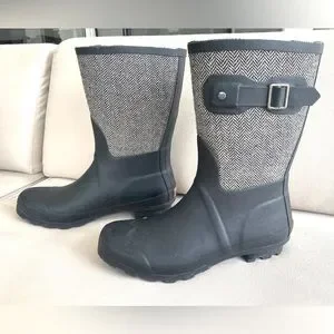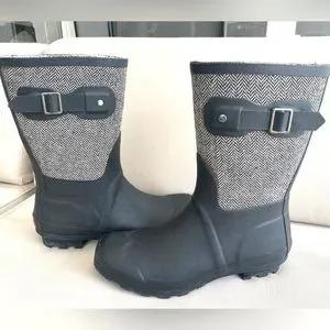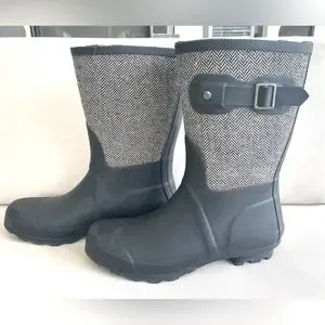 Chooka | Matte Black & Herringbone Mid-Rise Rain Boot