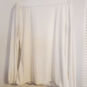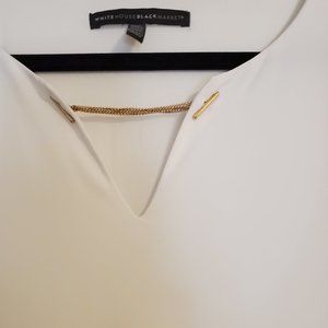 White House Black Market Long Sleeve White Blouse with Gold Chain (XL)