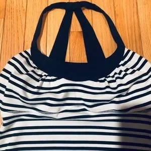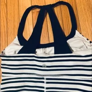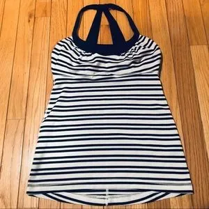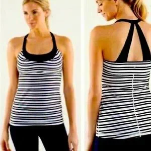 Striking striped Lululemon workout tank with built in shelf bra