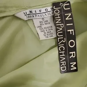 Brand new with tag John Paul Richard lime green skirt suit with pencil skirt with back split (zips up back with hook closure) and button front long line jacket. Lined.