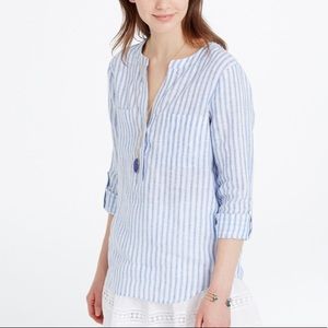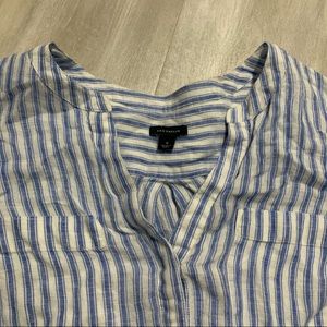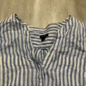 Ann Taylor 100%LINEN Blue White Striped Top Sz S