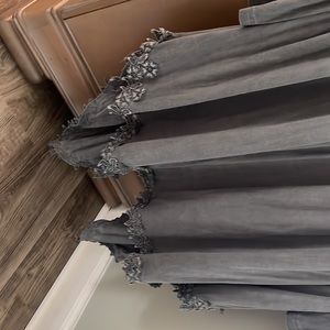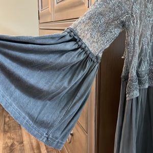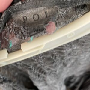 Womens dark grey lace and cotton covering. Sleeves are 3/4 half lace half cotton material. It is a S/M. The back is half lace top - flower pattern and cotton bottom with embellishment on the hem. This is a boutique item - brand is Pol.