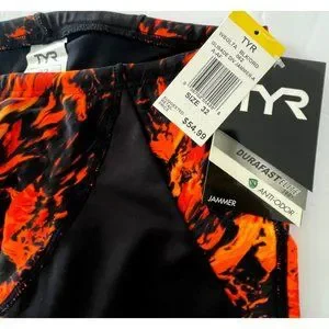 New with Tags, TYR Men's Durafast Elite Glisade Diverge Jammer Swimsuit, Black with Oragne, Size 32, $52.