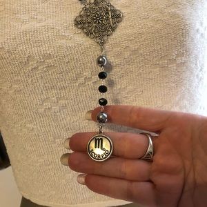 Scorpio Zodiac black beaded rosary necklace