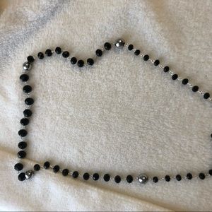 Faceted black glass beaded necklace with silver hematite accents, filigree medallion at the center, Scorpio pendant