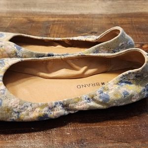 Beautiful Lucky Brand Flats. Floral print and stitching on heels. In great condition with no stains, tears or odor. Comes from a smoke free home.
