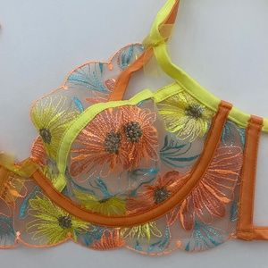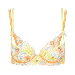 Channel your inner impressionist in an exquisite demi featuring floral embroidery that evokes lush water lilies in soft neons. Decorated with scalloped trim along the cups and band.