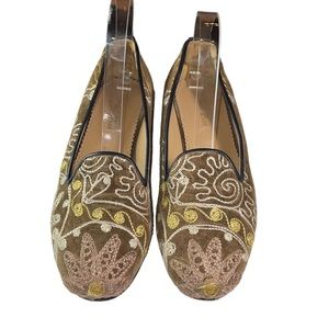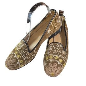 Velvet Road Brown Tan Gold Embroidered Ballet Flats womens shoes size 7.5