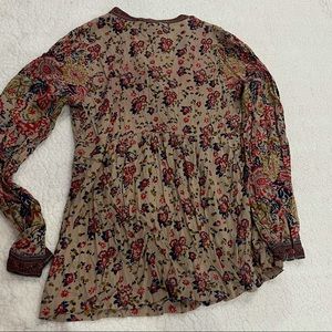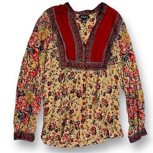 Lucky Brand Floral Print Western Boho Prairie Button up Blouse Size Small