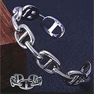 Sterling Silver Mariner Pig Nose Coffee Bean Bangle Cuff Bracelet Matching Ring