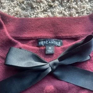 This is a size medium j crew mercantile sweater. Burgundy with a black bow on front neck line