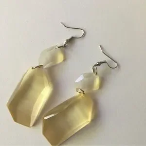 3. Fantastic faceted resin dangle earrings that catch the light perfectly. A gorgeous light citron color. Light weight considering size.