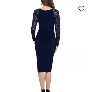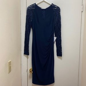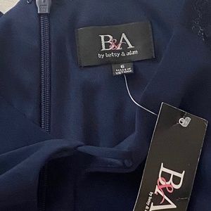 NWT BETSY & ADAM Sheer-Sleeve Navy Blue Dress - Size 6