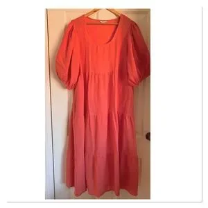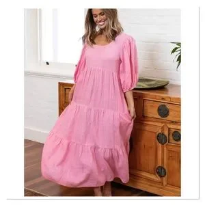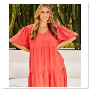 Adrift Luxe Linen Tiered “Sabre” Dress - Watermelon