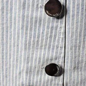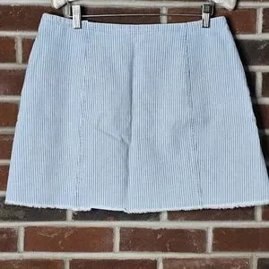 π· Super cute! NEVER BEEN WORN... ZARA Blue & White stripes denim jean skirt, w. silver button embellishments on front, a raw hem bottom, w. a side zipper.