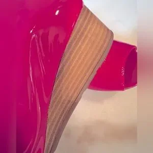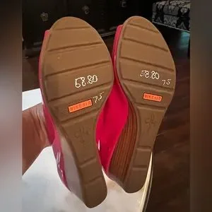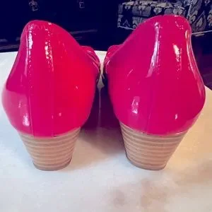 New Cole Haan Hot Pink Patent Leather Peeptoe 1 inch Wedges 7.5