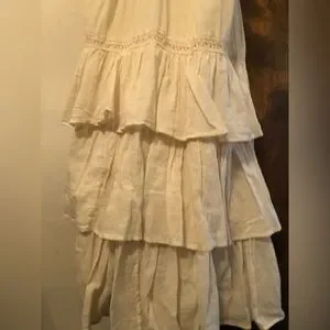 Tiered dress! So lovely and reminds me of a throw back in time. Timeless piece. Very small spot of discoloration as show in armpits- not at all noticeable when on. It can probably be further taken out but I hand wash very gently. Sample sale - no tag