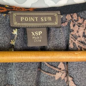 EUC Point Sur Drapey Black Floral Open V neck Top