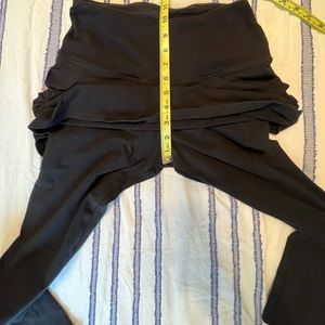 From the wonderful shape-wear brand, Ruby Ribbon. These are cute and functional. They are slimming and sculpting black leggings with a flattering ruched skirt built in. Medium weight fabric that won’t show through! Please see all pictures for approximate measurements. Nice rise at about 10” to hold it all in. From a pet free, smoke free home. Clean with no tears, rips, stains, or odors. Thank you for looking!