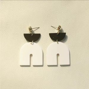 GEOMETRIC SHAPE BLACK & WHITE DANGLE STATEMENT EARRINGS