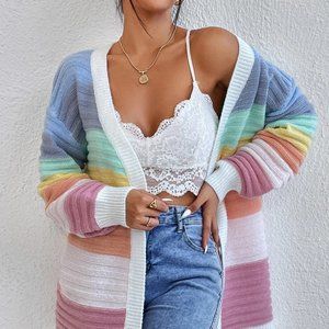 Multicolor Boho Womens Colorblock Drop Shoulder Duster Cardigan
