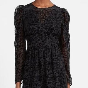 Express Velvet Puff Sleeve Fit and Flare Dress
