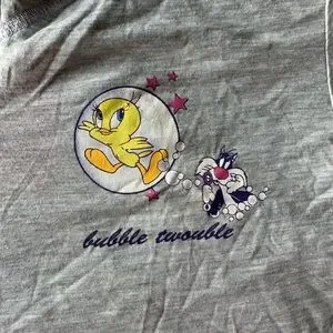 NWT! Warner Bros Tweety Sylvester Knit Pajama Set Large Short Sleeve Gray Purple