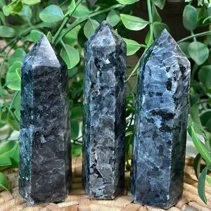 Larvikite Tower Crystal Gemstone Point Black Flash