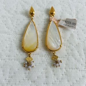 Handmade earrings feature faceted lapis lazuli framed in 24-karat gold plating to add roughly hewn elegance to your look.