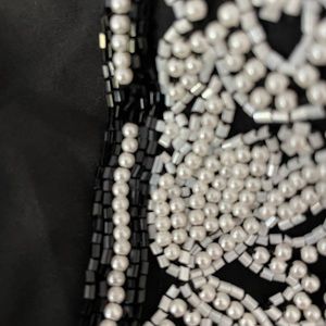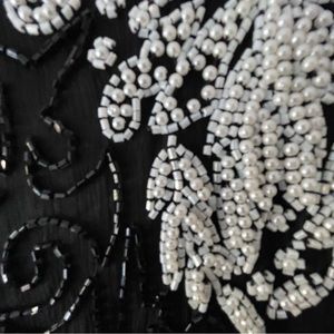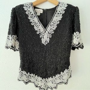 AMAZING Sparkling beaded fitted top by Laurence Kazar Black White Sequins with Scalloped.
