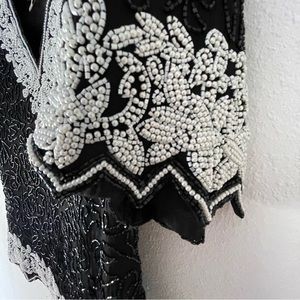 Laurence Kazar Black White Beaded Sequins Vintage Scalloped Sleeve Blouse Size M